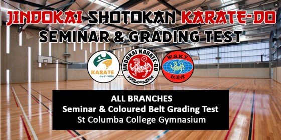 We're excited to announce our upcoming Whole Dojo Seminar & Coloured Belt Grading Tests   This event offers an opportunity for students from all branches to come together for training and assessment.   SEMINAR ONLY (not participating in the Grading Test) $20.00 COLOURED BELT GRADING TEST (includes Seminar) $70.00 All Participants are required to hold a current Karate Australia Membership: https://www.jindokai.com.au/registration/   IMPORTANT: All Jindokai Members are STRONGLY encouraged to attend the Whole Dojo Seminar, on Saturday, May the 10th. (Whether you are participating in the Grading Test, or not) Seminar is followed by our Dojo Group Photograph @ 11:30am   Coloured Belt Grading Tests: GRADING Test Inclusions: Question Time Basic Skill Drills Target Work – precision and timing Kumite – Skills & Assessment criteria Kata – at least 3 Kata NORMAL ELIGIBILITY CRITERIA APPLIES: All Participating Members MUST be able to demonstrate the following: Complete the minimum number of Training Sessions Competency in Kata; including knowledge of applications, and skilfully performed Competency in Kumite; including an understanding of essential assessment criteria Understands basic terminology, and concepts of traditional Karate training Recommendations: Stay and watch the group that follows your group - making sure that you write down anything that you are unsure about - helping you to be better prepared for your next test. Attend, even if you are not participating - it is recommended that you attend, to watch, and prepare for your next test. Bring a note-pad – write yourself notes – what went well? – what did not? TERMS & CONDITIONS: Don’t be late: Participants will NOT be given entry, if arriving after your Test has commenced. Passing is NOT guaranteed: Participants that do not achieve the required ‘pass-mark’, WILL NOT receive a new Rank. NO PASS - No Refund: Attempting your test, but not passing, will cost you your entire fee. ALL PAYMENTS TO BE MADE ON THE EVENT PLATFORM – NO PAYMENTS ACCEPTED, AT THE DOJO.   Community: In the same way that you occasionally seek assistance from others, it is important that you are present when others need Your help, too. Grading Tests are not just about 'checking in' for your own event, then leaving when you're done - we support each other, encourage each other, and learn from each other. "Succeed through the development of others"     REGISTRATIONS CLOSE - Saturday, May 3rd NO LATE REGISTRATIONS